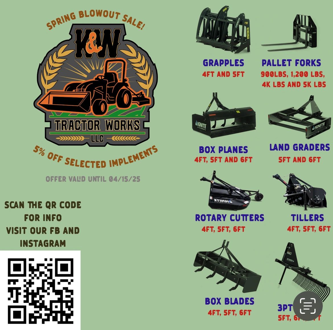 K&W Tractor Works, LLC is a first responder family-owned business located in Wellington, Ohio, specializing in premium tractor implements and skid steer attachments. We provide expert advice and hands-on product demonstrations to ensure our customers find the right solutions for their needs.